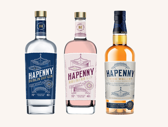 For Dublin is a city of character and of characters and is warm, witty and welcoming in equal measure. And that spirit has connected people through the years, just as the Ha’penny bridge joined the people of Dublin. - HA’PENNY Dublin Dry Gin - HA’PENNY Rhubarb Gin Whiskey - HA’PENNY Irish Whiskey